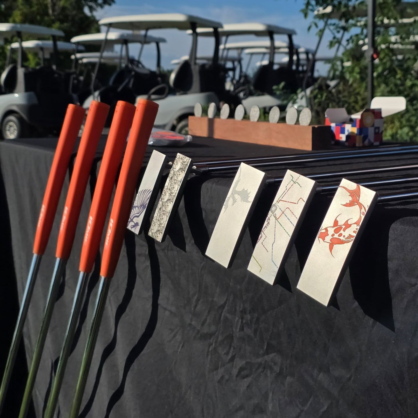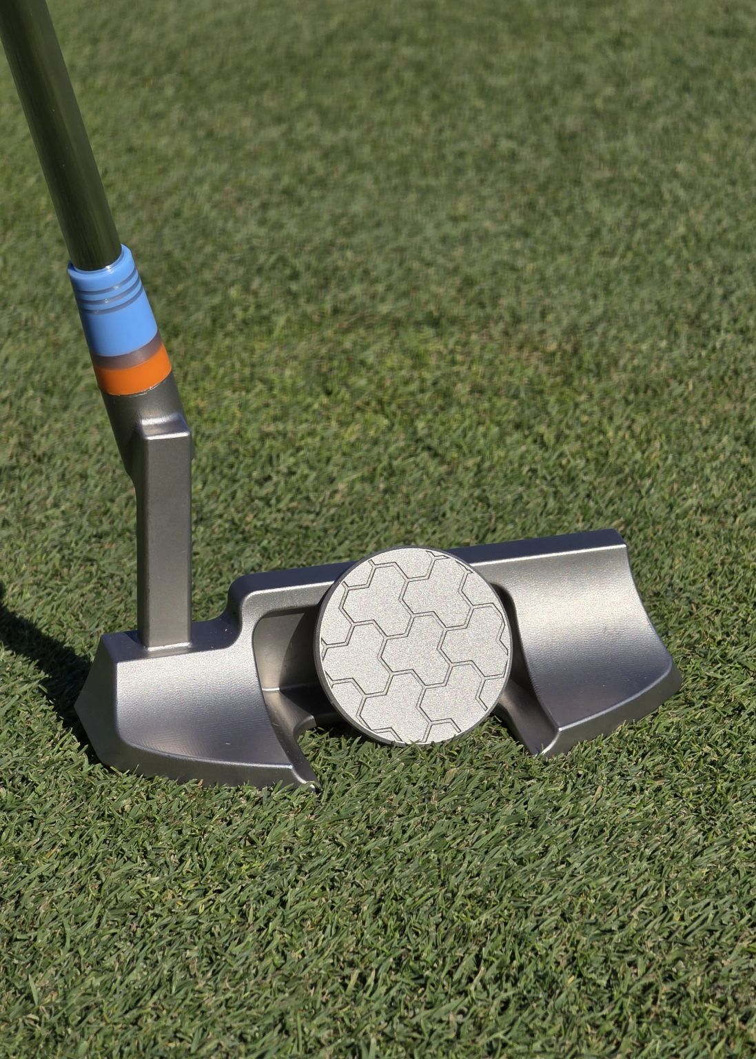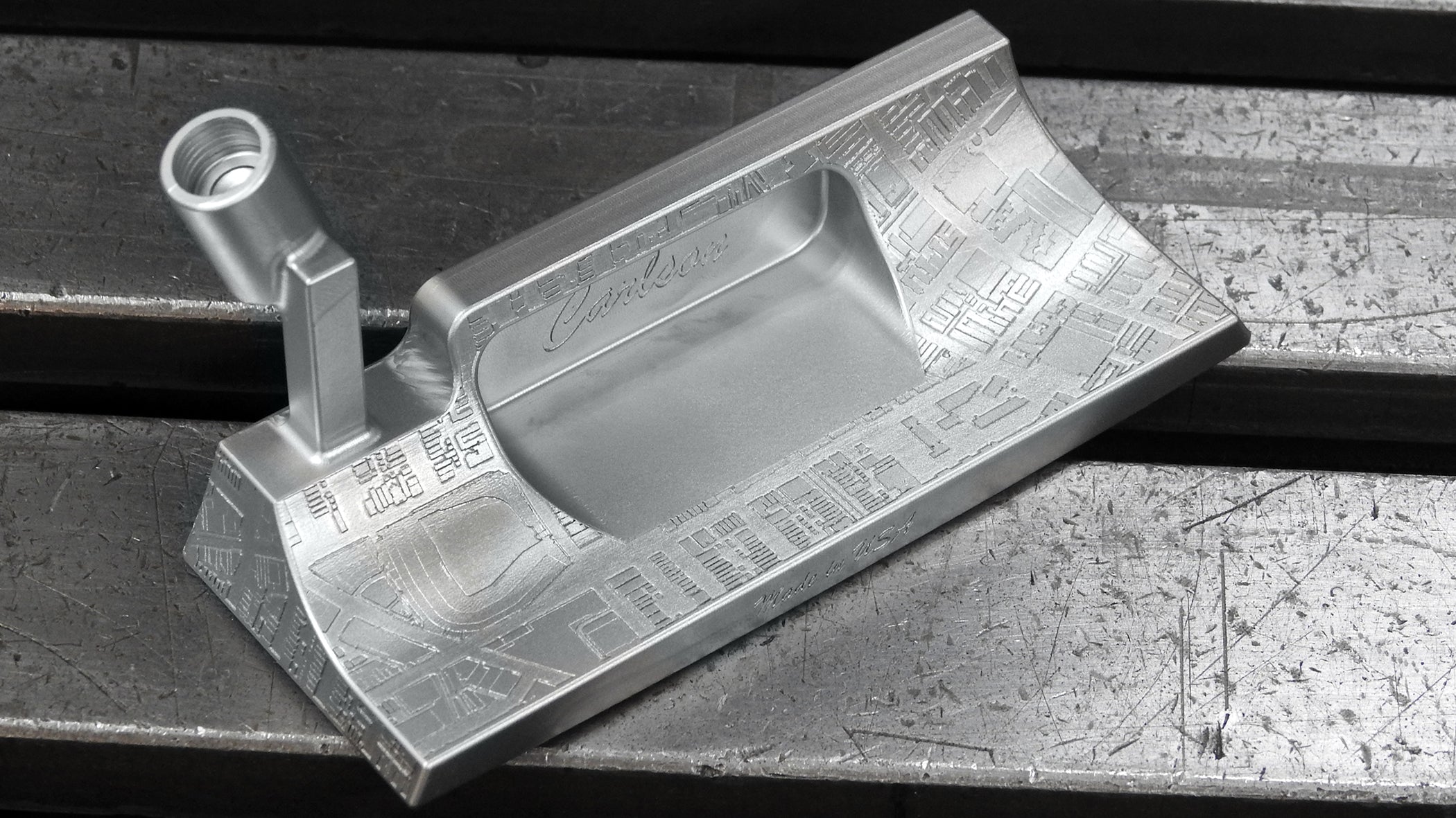 Carlson’s putterheads can be etched / engraved on the top, back, sides, and bottom sole; if desired, vibrant colors can be added to the engraving to achieve maximum visual “pop”. Jon’s skills are akin to a tattoo artist on metal, not skin, and his putters are a fusion of personal identity and performance. Check out the further examples of customization in the photo gallery below.